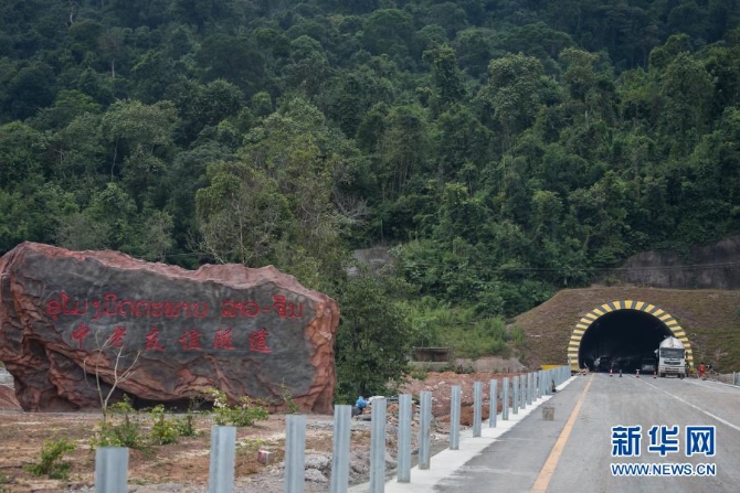 这是10月27日在老挝万象省拍摄的万万高速公路友谊隧道。新华社发(凯乔摄)