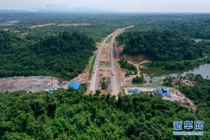这是6月2日在老挝万象省航拍的建设中的万万高速公路。(无人机拍摄)新华社发(云南建投集团供图)
