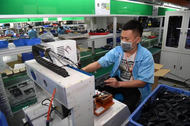 4月15日,中国—东盟自由贸易区凭祥物流园一家外贸企业的员工在生产出口海外的电子产品。新华社记者 陆波岸 摄