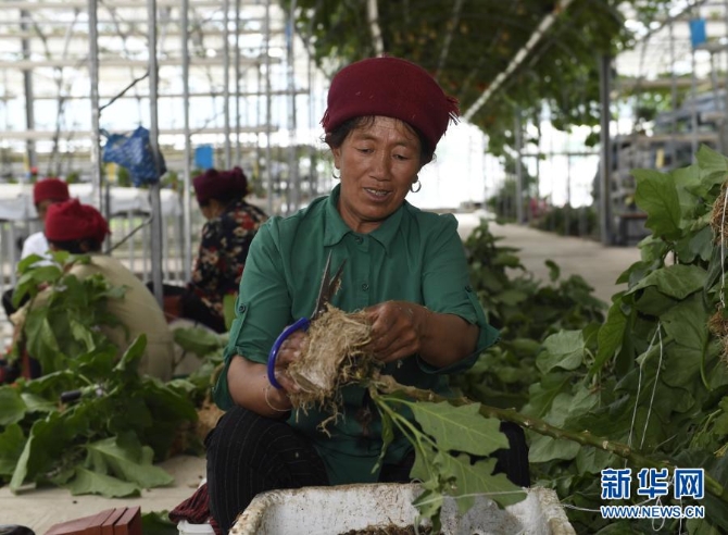 8月10日,四川省凉山彝族自治州昭觉县四开乡好谷村的阿尔衣呷在家附近的涪昭现代农业产业园内务工。新华社 记者刘坤/摄