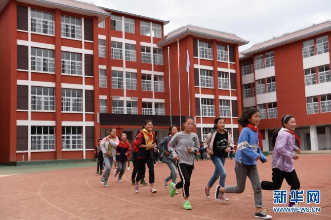 四川省布拖县阿布泽鲁小学的学生们在新操场上跑步(6月22日摄)。新华社 记者胥冰洁/摄