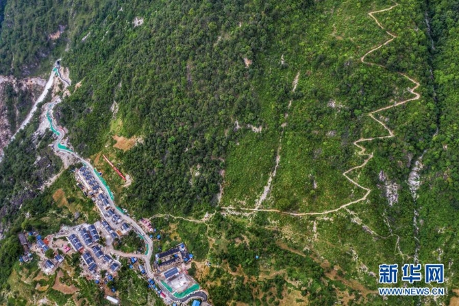 金阳县天地坝镇通往吉史里口村易地扶贫搬迁集中安置点的道路(6月7日摄,无人机照片)。新华社 记者江宏景/摄