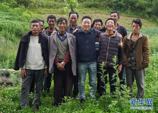 派驻到布拖县觉撒乡的帮扶干部杨永林(前排中)和博作村的彝族群众合影(6月22日摄)。新华社 记者江宏景/摄