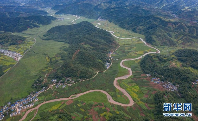金阳县热柯觉乡丙乙底村境内蜿蜒盘旋的旅游道路(6月5日摄,无人机照片)。新华社 记者江宏景/摄