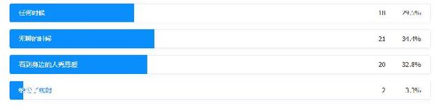 《报告》显示,仅29.5%的单身人士表示任何时候都想找对象,在无聊的时候最想找对象的人占比34.4%,看到身边的人秀恩爱时最想找对象的人占比32.8%,给份子钱时想找对象的人占比3.3%。