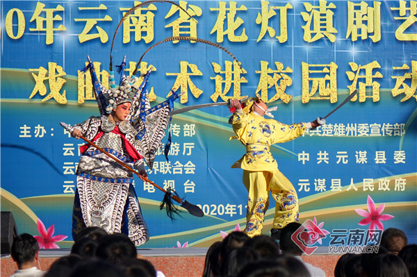 11月19日,云南省花灯滇剧艺术周走进元谋县第一中学,云南文化艺术职业学校带去了花灯、滇剧、流行歌曲等内容丰富的精彩节目,与全校1700余名师生互动,让学生切身感受花灯滇剧的魅力,唤起了学生了解、熟悉、热爱戏曲的热情。