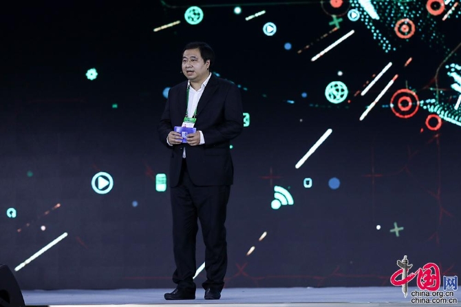 360集团首席科学家潘剑锋发布领先科技成果:360 全息星图网络空间测绘系统。中国网记者 董宁 摄影
