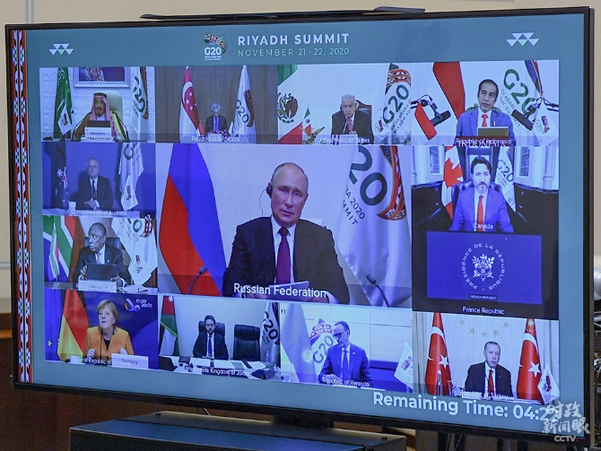 △11月21日,俄罗斯总统普京、巴西总统博索纳罗以视频方式出席G20领导人第15次峰会第一阶段会议,讨论新冠肺炎应对策略。