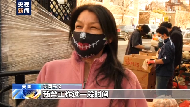 美国民众:从开始分发食物,我就一直来领取,应该是从今年初新冠肺炎疫情发生后,我曾工作过一段时间,后来因为疫情被解雇了。