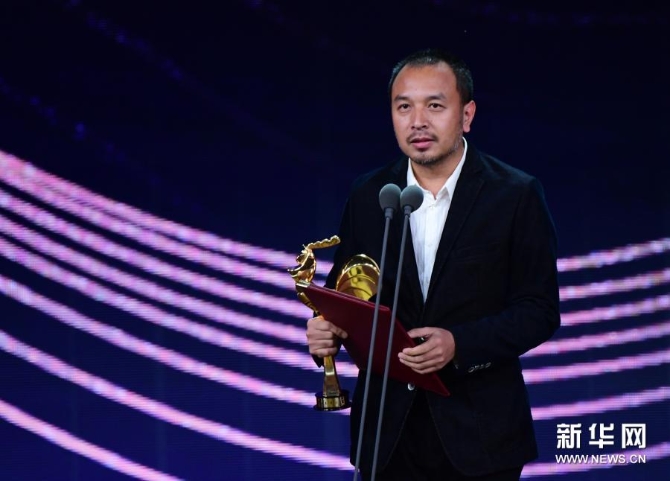 11月28日,《白云之下》导演王瑞(右一)获第33届中国电影金鸡奖最佳导演奖。新华社记者 魏培全 摄