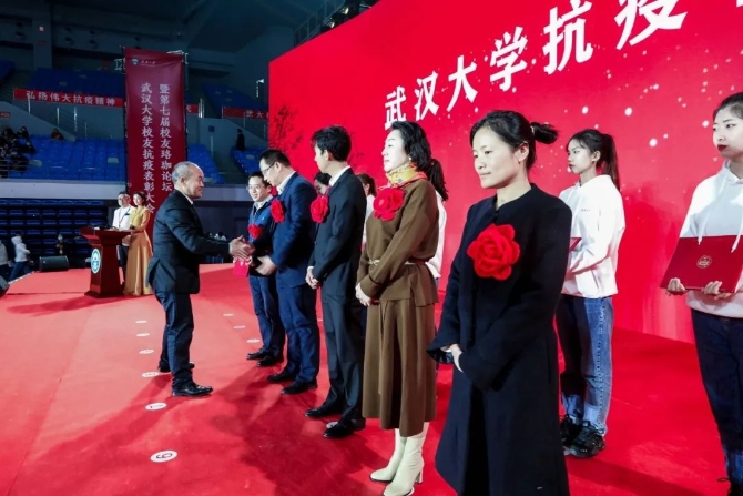 11月28日,在127周年校庆的前夕,武汉大学用一场热烈的仪式对在抗击2020年新冠肺炎疫情战疫中功勋卓著的校友集体、校友个人进行表彰,200多位校友代表和3000多名学生参加表彰会。