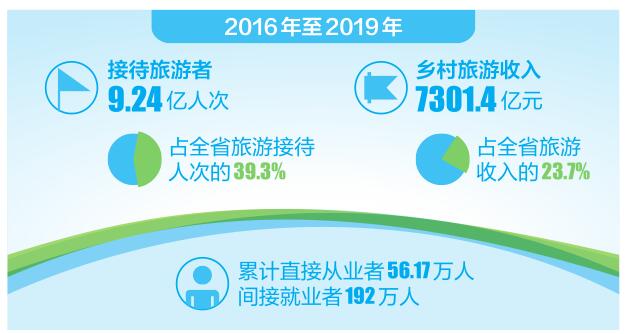 记者日前从2020年全省乡村旅游工作会议上获悉,2016年至2019年,我省乡村旅游共接待旅游者9.24亿人次,占全省旅游接待人次的39.3%;乡村旅游收入7301.4亿元,占全省旅游收入的23.7%;全省累计直接从业者56.17万人、间接就业者192万人,综合带动75万贫困人口增收脱贫。“十四五”期间,我省将继续推动乡村旅游高质量发展,助力乡村振兴。