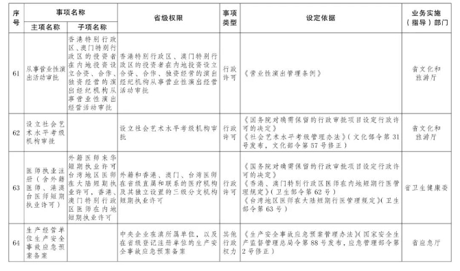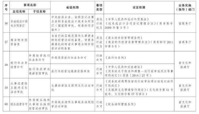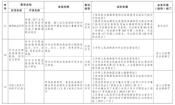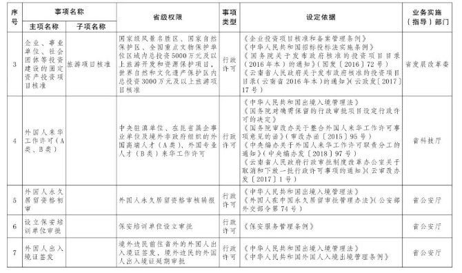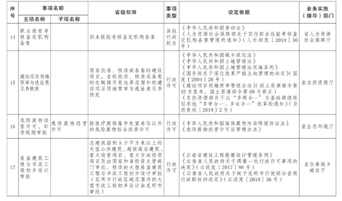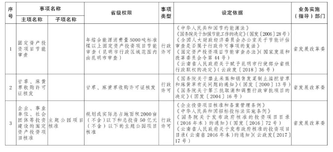 按照《国务院关于印发6个新设自由贸易试验区总体方案的通知》(国发〔2019〕16号)和《国务院关于同意新设6个自由贸易试验区的批复》(国函〔2019〕72号)精神,省人民政府研究决定,向中国(云南)自由贸易试验区(以下简称云南自贸试验区)昆明、红河、德宏片区管委会下放第一批省级行政权力事项73项,其中行政许可事项55项,行政确认事项2项,其他行政权力事项16项。