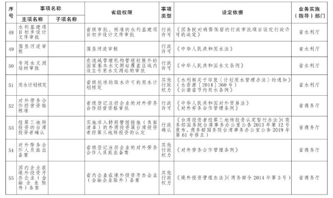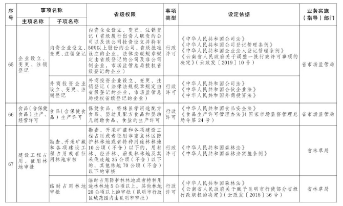 12月10日,记者从云南省人民政府网站获悉,省人民政府研究决定,向中国(云南)自由贸易试验区(以下简称云南自贸试验区)昆明、红河、德宏片区管委会下放第一批省级行政权力事项73项,其中行政许可事项55项,行政确认事项2项,其他行政权力事项16项。详情如下: