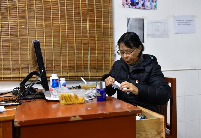早上六点多,张桂梅在吃药(12月2日摄)。新华社发(陈欣波 摄)