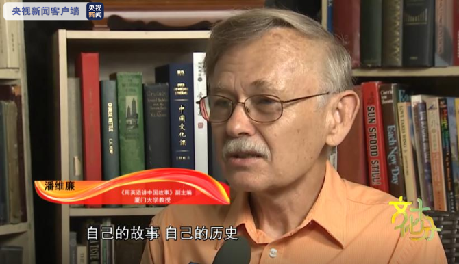 《用英语讲中国故事》副主编 厦门大学教授 潘维廉:胡敏看了中国很多孩子出国学英语,他们会学习西方的那些故事历史,但是不知道自己的,所以他觉得他们应该了解,自己的故事、自己的历史,然后到国外也可以好好讲中国的故事。