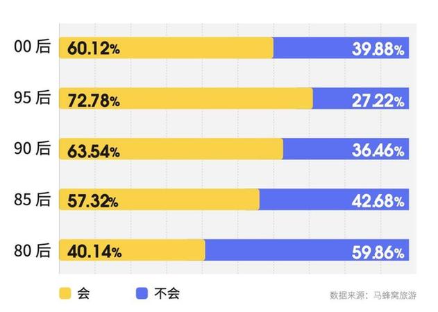 马蜂窝旅游大数据显示,年轻人群的夜游参与度最高,72.78%的95后游客表示会在旅行中专门策划夜晚游玩的行程。90后和00后游客专程体验夜生活的人群占比也分别达到63.54%和60.12%。在马蜂窝平台上,“夜游胡同”、“夜游西湖”、“珠江夜游”等攻略一直深受年轻游客欢迎,关注度高居不下。