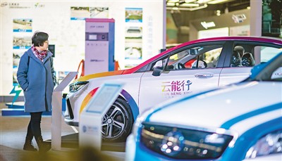日前,新能源汽车下乡云南站活动启动仪式在昆明国际会展中心举行,来自北汽昆明分公司、东风云汽等企业参加了本次活动。图为前来参加活动的市民在现场参观。新华社记者江文耀摄