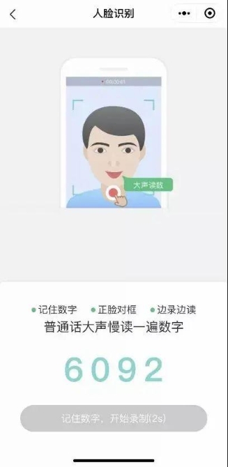 眨眼认证:当你出现在圆框内,请正面对准圆框,眨眨眼、点点头完成认证。读数认证:当屏幕出现4位数字,需要读数,请正面对屏幕,一边读数字一边录像进行认证。