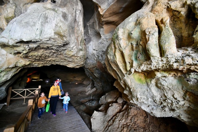 游人在位于福建省三明市三元区岩前镇的万寿岩遗址船帆洞游览(4月9日摄)。新华社记者 姜克红 摄
