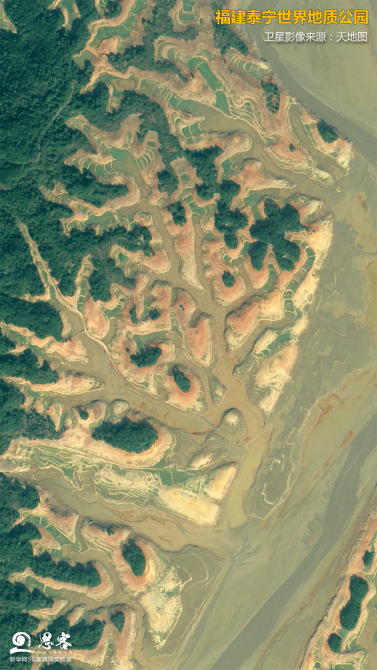 ▲福建泰宁世界地质公园水上丹霞。卫星影像来源:天地图