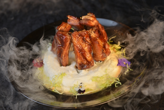 在广州花园酒店的米其林推荐餐厅桃园馆内,厨师喜用当季优质食材来烹饪每一道暖心菜肴。比如那火气十足的“260天盐烤羔羊排”,这是一道十分应景应季的佳肴。厨师甄选260天的羔羊,特别选择肥瘦结合的羊排部位进行烤制。羊排质地松软,肉质鲜嫩多汁,佐以厨师特调的孜然粉和辣椒粉,那香气足以飘十里。吃这羊排大可放下矜持,将手清洁干净,手持羊排大快朵颐!果木蜜汁烧肋排有异曲同工之妙,取材精瘦幼嫩的猪肋排,加以果木古法烧制。广东人在烧制上流行用果木来烧,例如烧鸡,还要用上那荔枝木。果木那独特的香气,在烧烤中油脂融入肉质中,口感丰润焦脆,果木清香萦绕于口中。