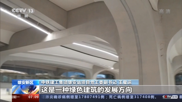中铁建工集团雄安站项目党工委副书记 王星运: 应用清水混凝土的地方就没有二次装修,这也是未来绿色建筑的发展方向。