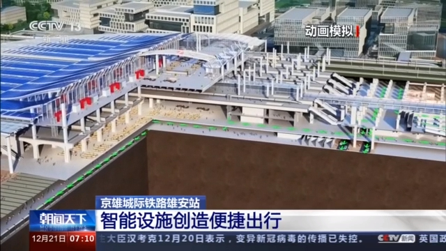 北京车务段雄安站党总支书记 付强:采用了多进多出的进出站流线,咱们现在所在地面层进站候车为主,上面高架层是进站候车为辅,利用地面层和站台层中间设置出站夹层,这样就形成了多进多出的进出站流线,实现了进站和出站的分层到发的分离,提高了车站枢纽的换乘效率,降低了旅客换乘的时间和经济成本。