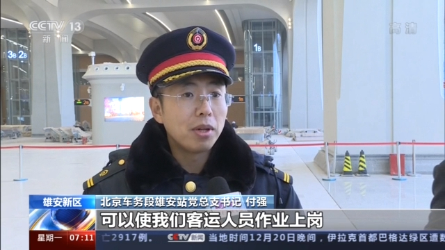 北京车务段雄安站党总支书记 付强:通过实时的列车运行计划,可以使我们客运人员作业上岗,车站的广播、车站的引导、自动检票,实现计划的统一指挥。