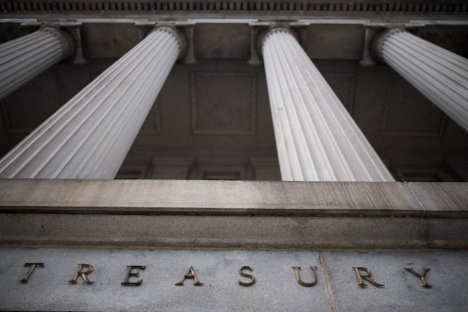 3月27日在美国首都华盛顿拍摄的美国财政部大楼。(新华社记者刘杰摄)