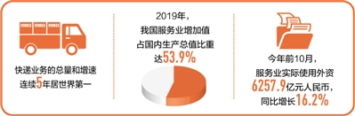 快递业务的总量和增速连续5年居世界第一,电子商务和移动支付交易额居世界第一……“十三五”以来,我国服务业规模日益壮大,质量效益大幅提升,新业态新模式快速涌现。