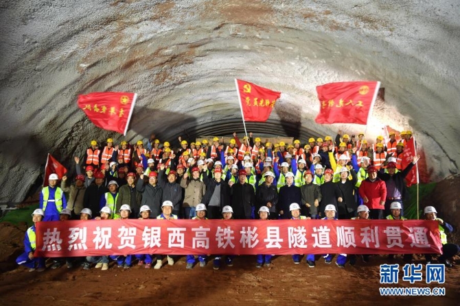 由中铁十一局承建的银西高铁彬县隧道顺利贯通(2019年12月28日摄)。新华社记者 张博文 摄