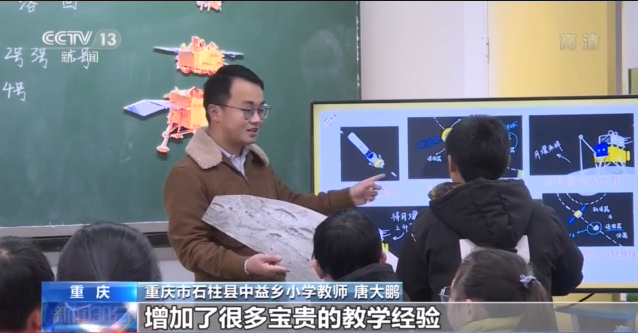这是重庆市石柱县中益乡小学六年级的一堂科学课,重庆市人和街小学特级教师陈妤,和中益乡小学的95后教师唐大鹏隔空联手,带孩子们认识中国的探月之路。这也是孩子们最喜欢的课程之一。