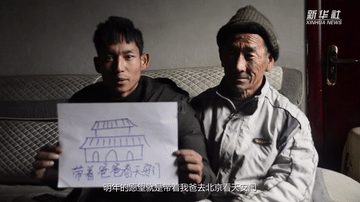 “明年愿望是带着我爸去北京看天安门。”小丁说完,父子俩对着笑开了。