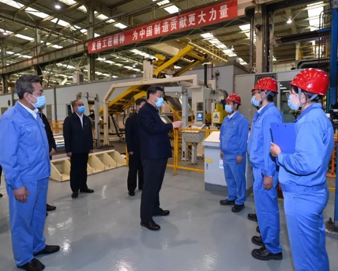 5月11日至12日,中共中央总书记、国家主席、中央军委主席习近平在山西考察。这是5月12日上午,习近平在太钢不锈钢精密带钢有限公司生产车间,了解企业复工复产情况。新华社记者 李学仁 摄