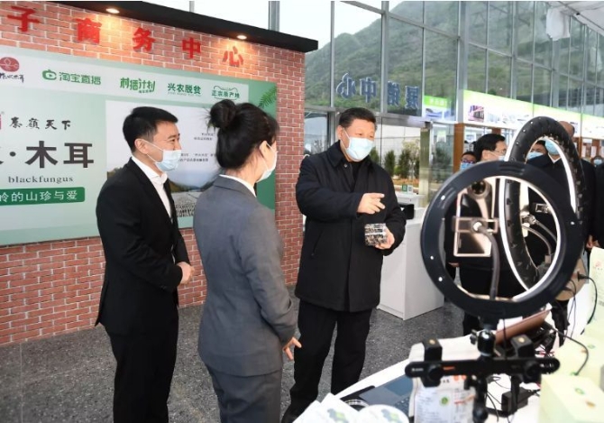4月20日至23日,中共中央总书记、国家主席、中央军委主席习近平在陕西考察。这是4月20日,习近平在商洛市柞水县小岭镇金米村培训中心,了解该村发展木耳产业情况。新华社记者 谢环驰 摄