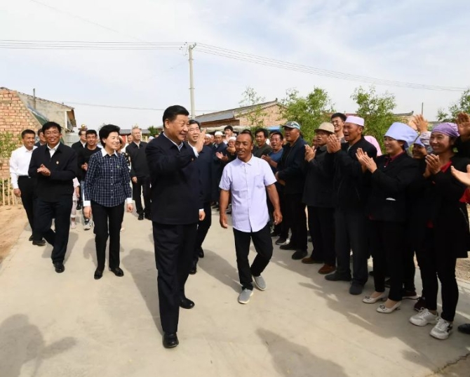 6月8日至10日,中共中央总书记、国家主席、中央军委主席习近平在宁夏考察。这是6月8日下午,习近平在吴忠市红寺堡区红寺堡镇弘德村看望移民搬迁群众,向村民们挥手致意。新华社记者 谢环驰 摄