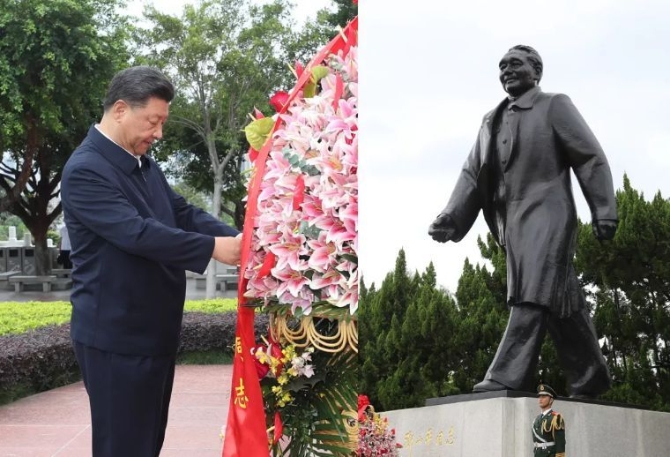 10月14日,深圳经济特区建立40周年庆祝大会在广东省深圳市隆重举行。中共中央总书记、国家主席、中央军委主席习近平在会上发表重要讲话。这是当天下午,习近平来到莲花山公园,向邓小平同志铜像敬献花篮。新华社记者 王晔 摄
