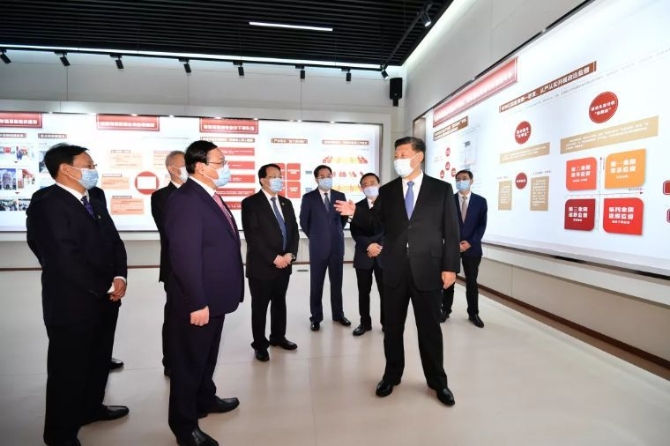 4月22日,中共中央总书记、国家主席、中央军委主席习近平在西安考察调研。这是习近平在陕西汽车控股集团有限公司了解企业复工复产情况。新华社记者 鞠鹏 摄