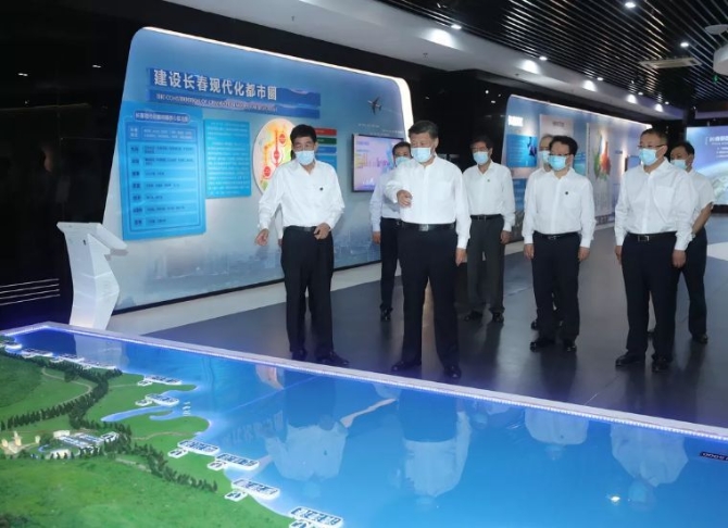 7月22日至24日,中共中央总书记、国家主席、中央军委主席习近平在吉林省考察。这是7月23日下午,习近平考察长春新区规划展览馆,了解新区规划建设情况。新华社记者 王晔 摄