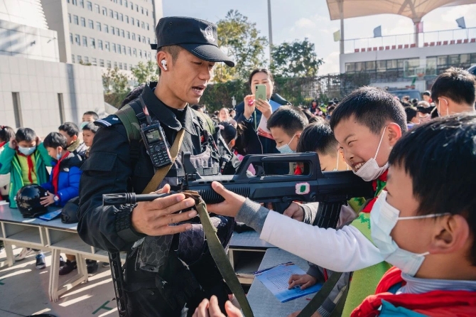 昆明市公安局呈贡分局走进云南师范大学附属小学(呈贡校区)以“小手拉大手”的方式,积极组织开展“向人民报告”主题活动,通过毒品模型展示、安全防身术表演等环节向同学们开展了法制安全宣传。