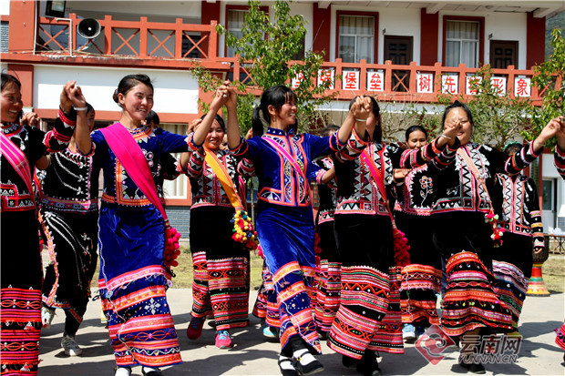 澜沧拉祜族自治县拉巴乡小拉巴村拉祜群众载歌载舞。李秋明 摄