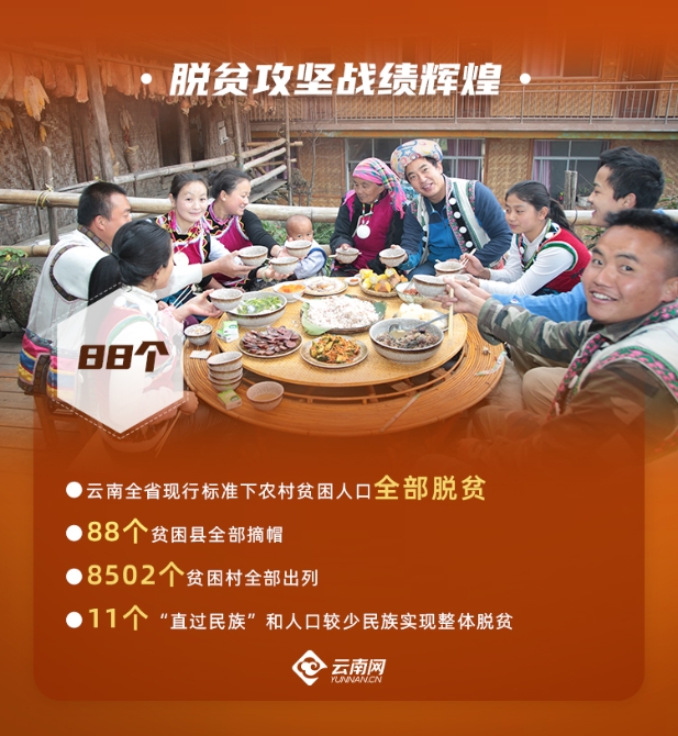 2020年11月,云南省88个贫困县全部脱贫摘帽,历经多年的艰苦奋斗,终于告别了千百年来的绝对贫困。回眸“十三五”,云南创造了“百万大搬迁”、“一步跨千年”和全面小康路上一个民族都没有掉队的历史奇迹。千方百计巩固拓展脱贫攻坚成果,这是当前和今后一个时期非常重要的任务,云南要放在压倒性位置来抓。