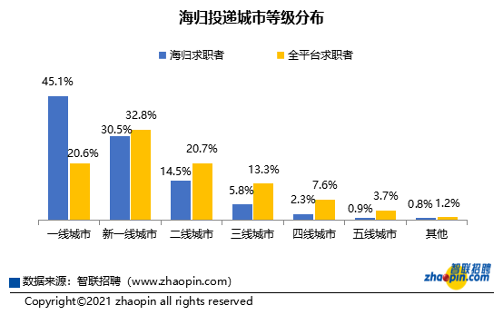 近日,智联招聘发布2020中国海归就业创业调查报告,其中揭示,疫情促使2020年留学生回国求职同比猛增,海归人才质量优化,求职者呈现年轻化、高知化趋势,金融、互联网、文娱行业更受海归偏爱,45%的海归期望扎根一线城市,京沪两城占3成之多。