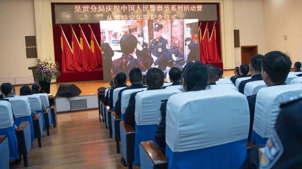 据悉,呈贡分局在当天还举行从警特定年限纪念仪式,“一心为民110 砥砺奋进新征程”警营开放日活动,集中观影活动,欢度首个“中国人民警察节”。