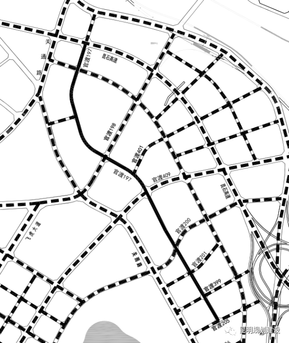 巫家坝片区主干道包括“三纵一横”(官渡4路409路、官渡241路、飞虎大道北段、春城路下穿)。