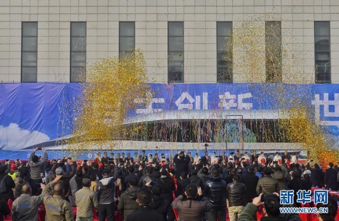 这是1月13日拍摄的高温超导高速磁浮工程化样车及试验线启用仪式现场。新华社记刘坤/摄