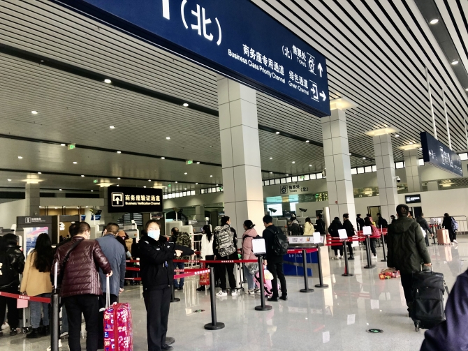 记者在现场看到,位于北广场进站安检口外围是疫情防控区,在这里,设置了体温测量区域,并放置有健康码和行程码宣传板,方便旅客使用手机扫码通过核验。对于不会使用智能手机的旅客,也可以在此处填写纸质健康申报表。旅客在通过测温区时,自助测温设备将对所有进站旅客进行体温检测,确保疫情期间旅客出行安全。