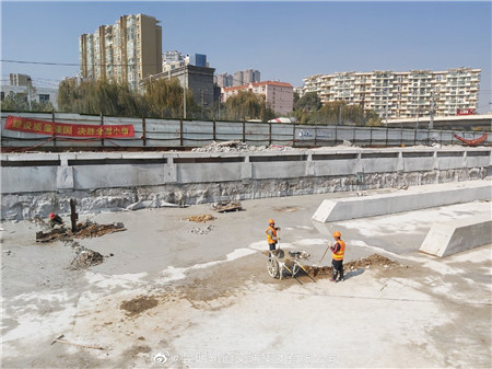 广福路站:正在进行主体结构施工,顶板准备混凝土浇筑。雾炮机和喷淋系统共同降尘,监测设备不停地监控空气质量,风速。