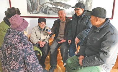胡锡恩老人(右三)在安徽马鞍山市含山县仁康老年公寓跟老年朋友们讲述自己的维权经历。